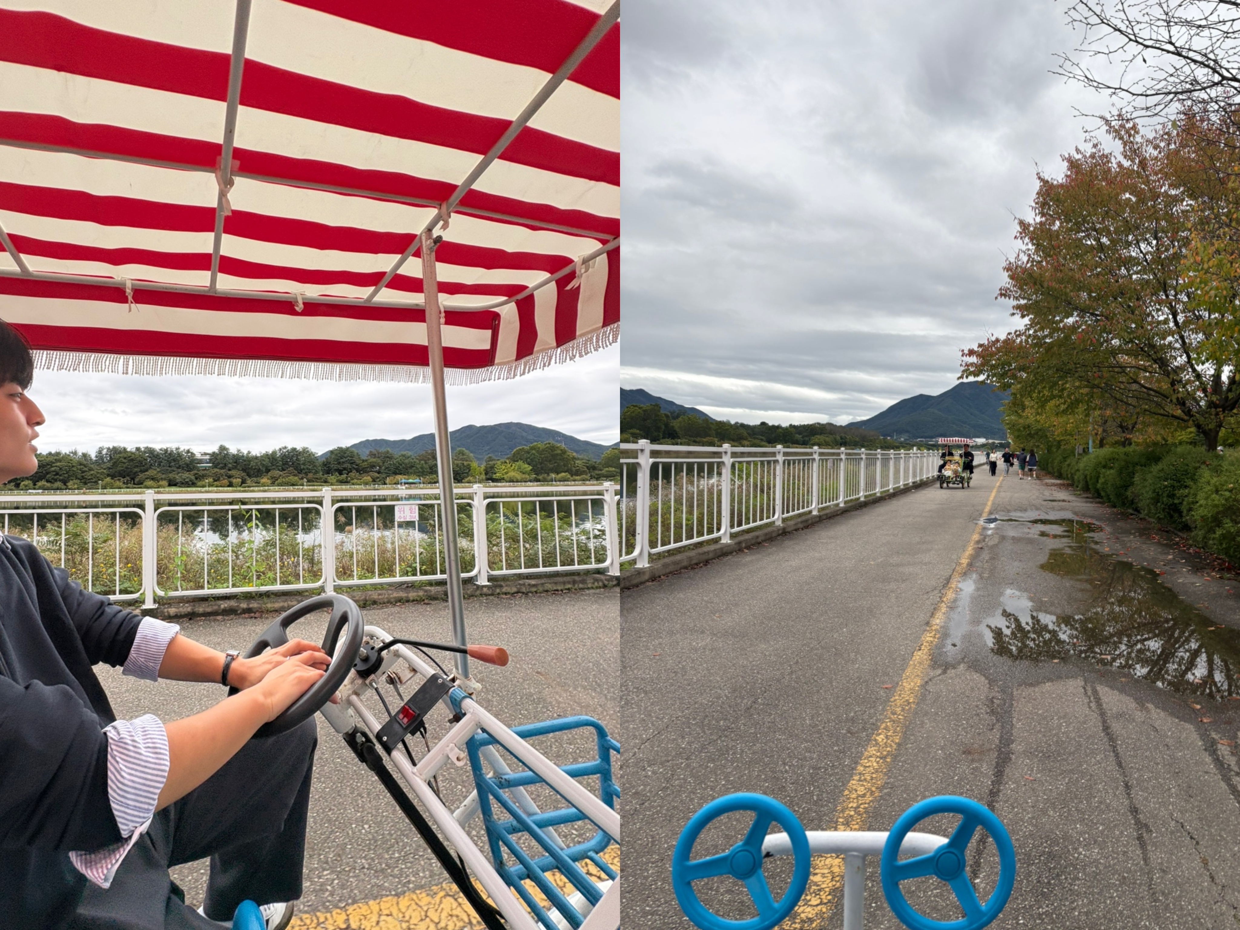 핑크뮬리를 배경으로 사진을 충분히 찍었다면, 이제 넓은 경정공원을 제대로 즐길 차례입니다. 이곳은 카누 경기장답게 길게 뻗은 수변 산책로가 특징인데, 이를 가장 잘 즐기는 방법은 이색 자전거 대여입니다.